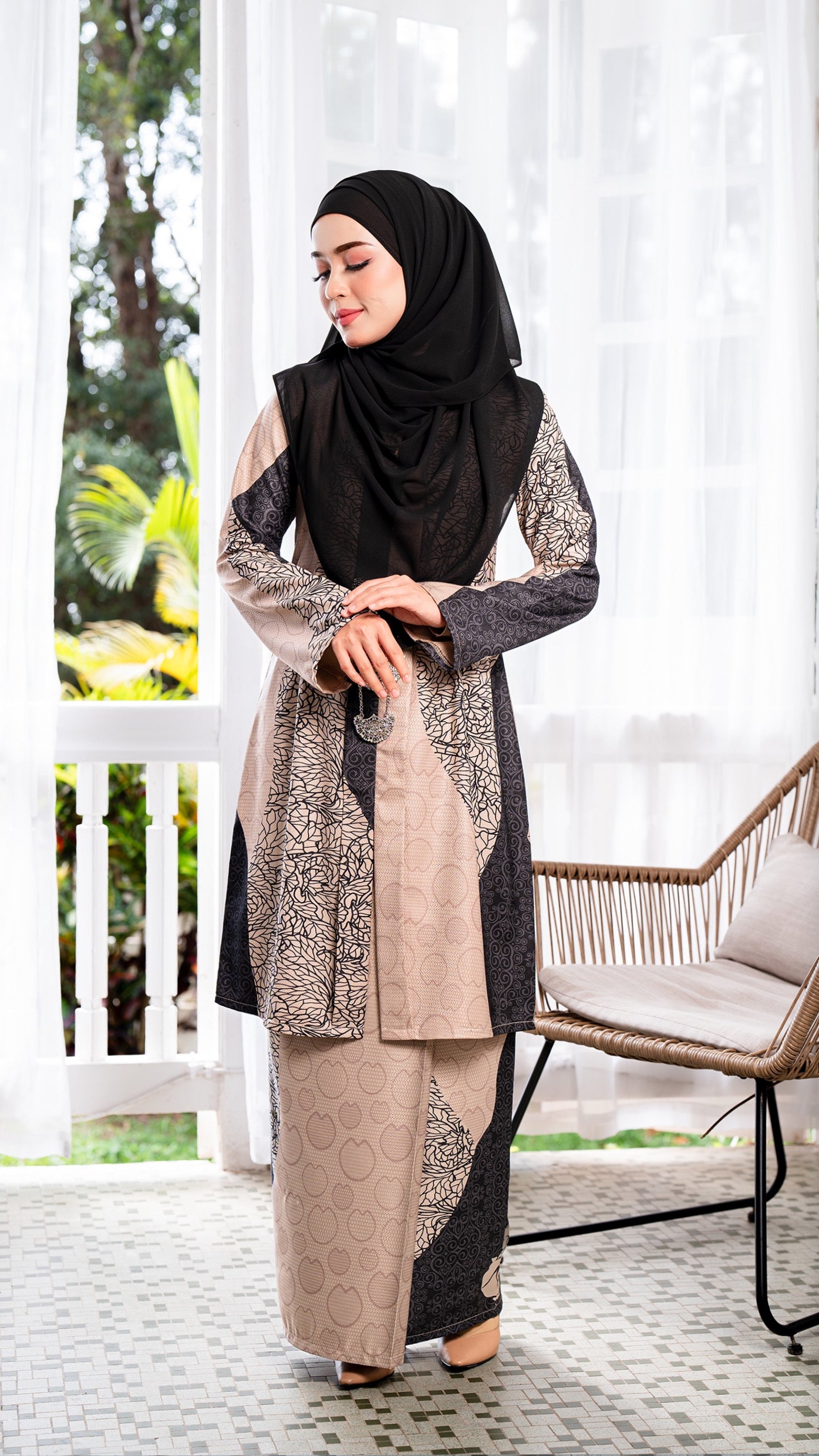 • Potongan kebaya moden labuh dan sopan