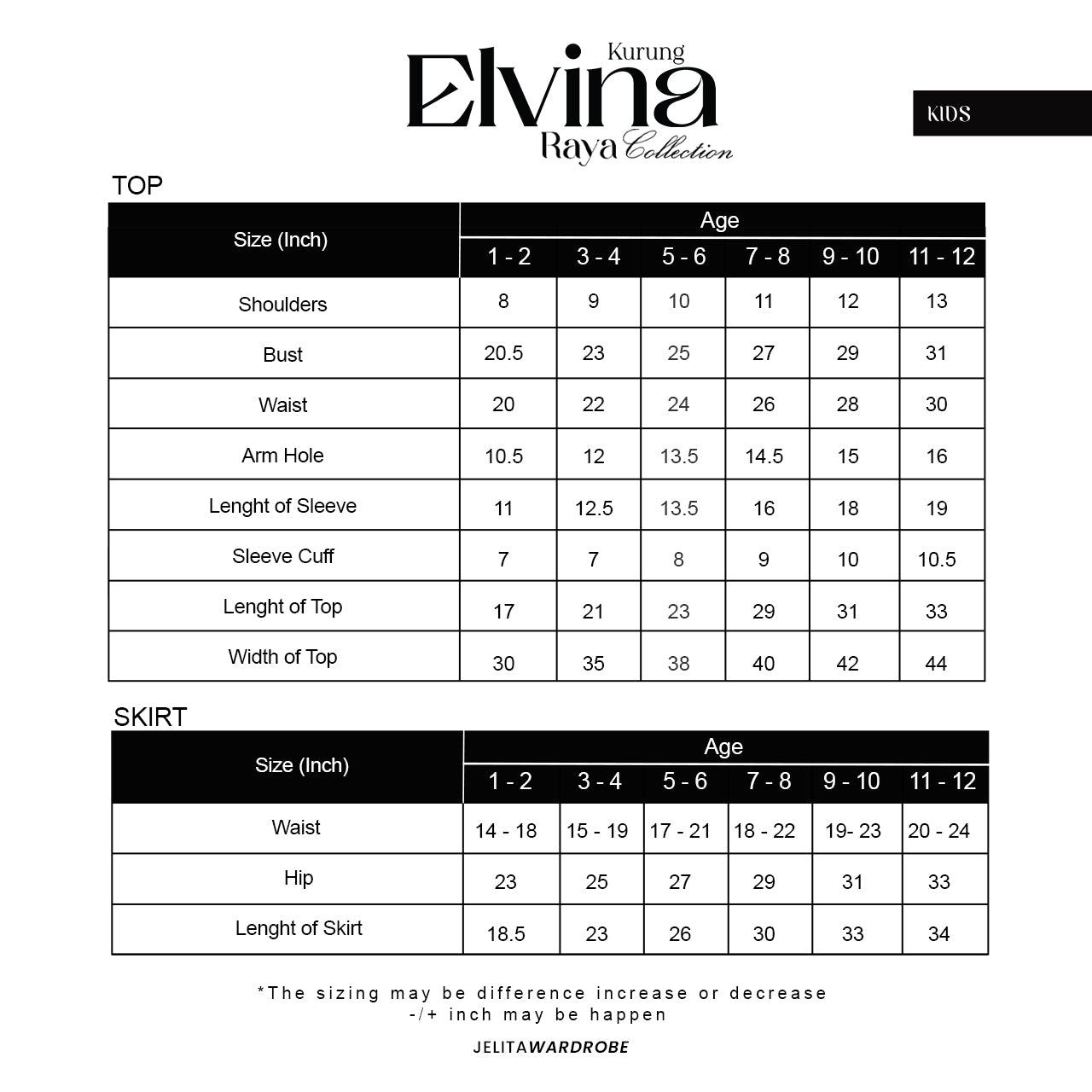 Ukuran setiap koleksi adalah berbeza, sila rujuk carta ukuran saiz. Disebabkan faktor pembuatan, ukuran yang dinyatakan ada variasi perbezaan lebih kurang 1 inci dari yang dinyatakan.
