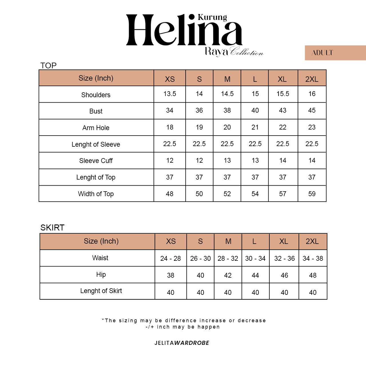* Ukuran setiap koleksi adalah berbeza, sila rujuk carta ukuran saiz. Disebabkan faktor pembuatan, ukuran yang dinyatakan ada variasi perbezaan lebih kurang 1 inci dari yang dinyatakan.