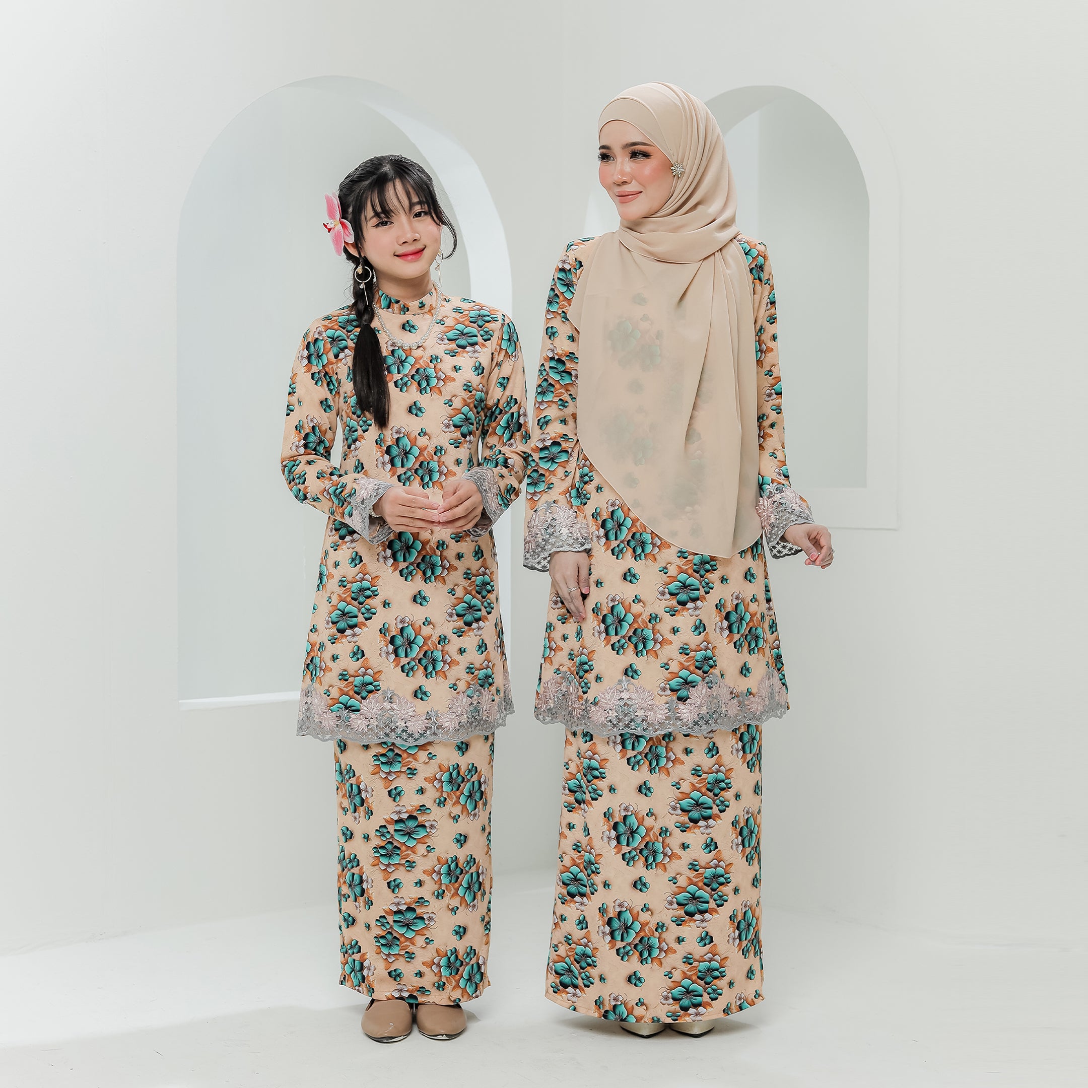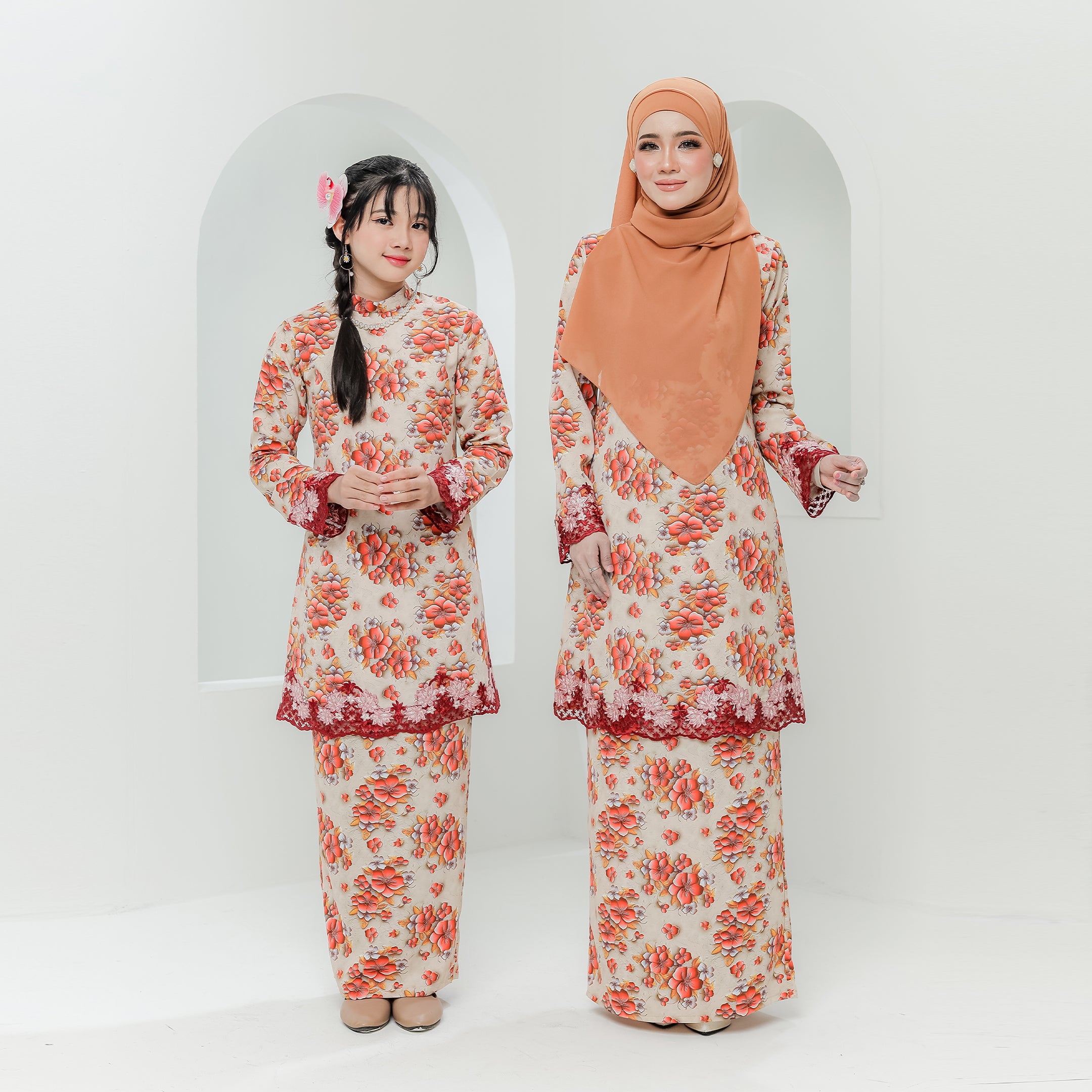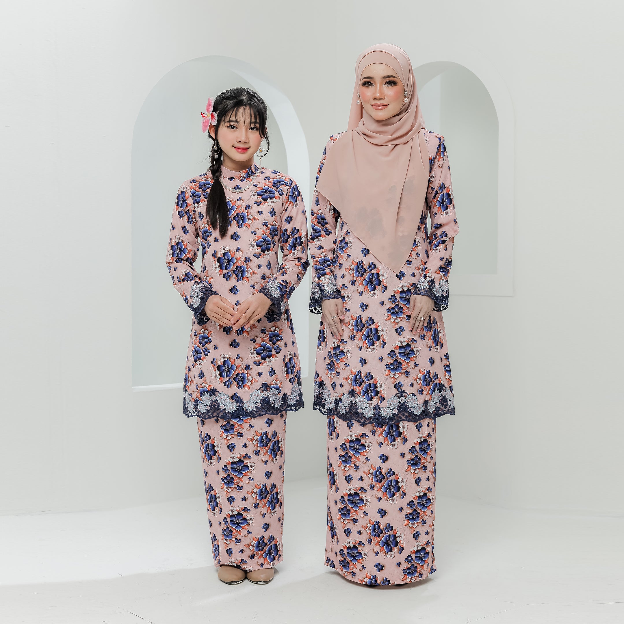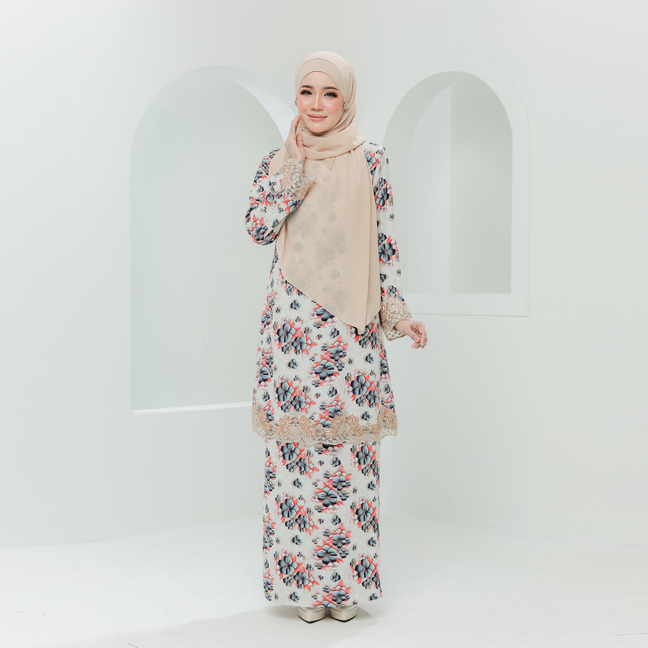 · Dihiasi lace bermotifkan floral pada hujung tangan dan bahagian depan baju