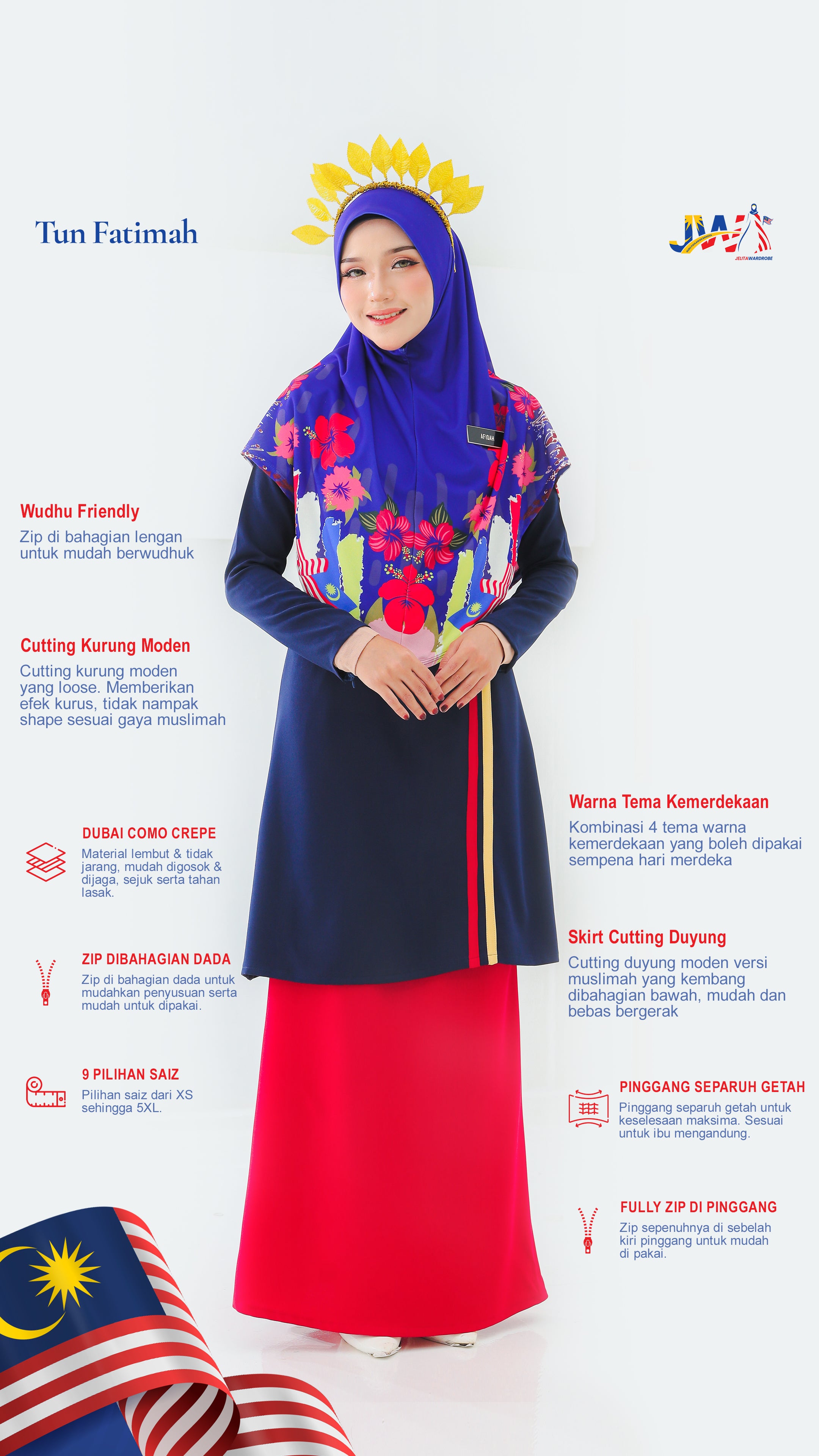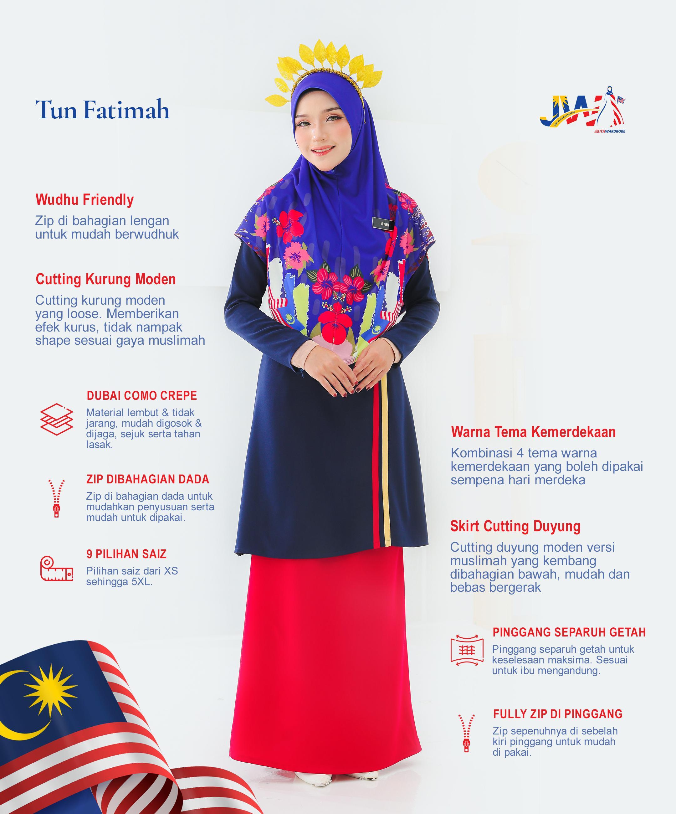 KURUNG TUN FATIMAH MERDEKA SERIESLIMITED EDITION- Kurung moden dengan cutting sopan dan material yang selesa untuk korg pakai seharian, Turut dihiasi dengan jalur bermotifkan warna kemerdekaan sesuai untuk korg pakai di hari kemerdekaan nanti. Pastinya boleh sedondon dgn kawan satu ofis dan sekolah.