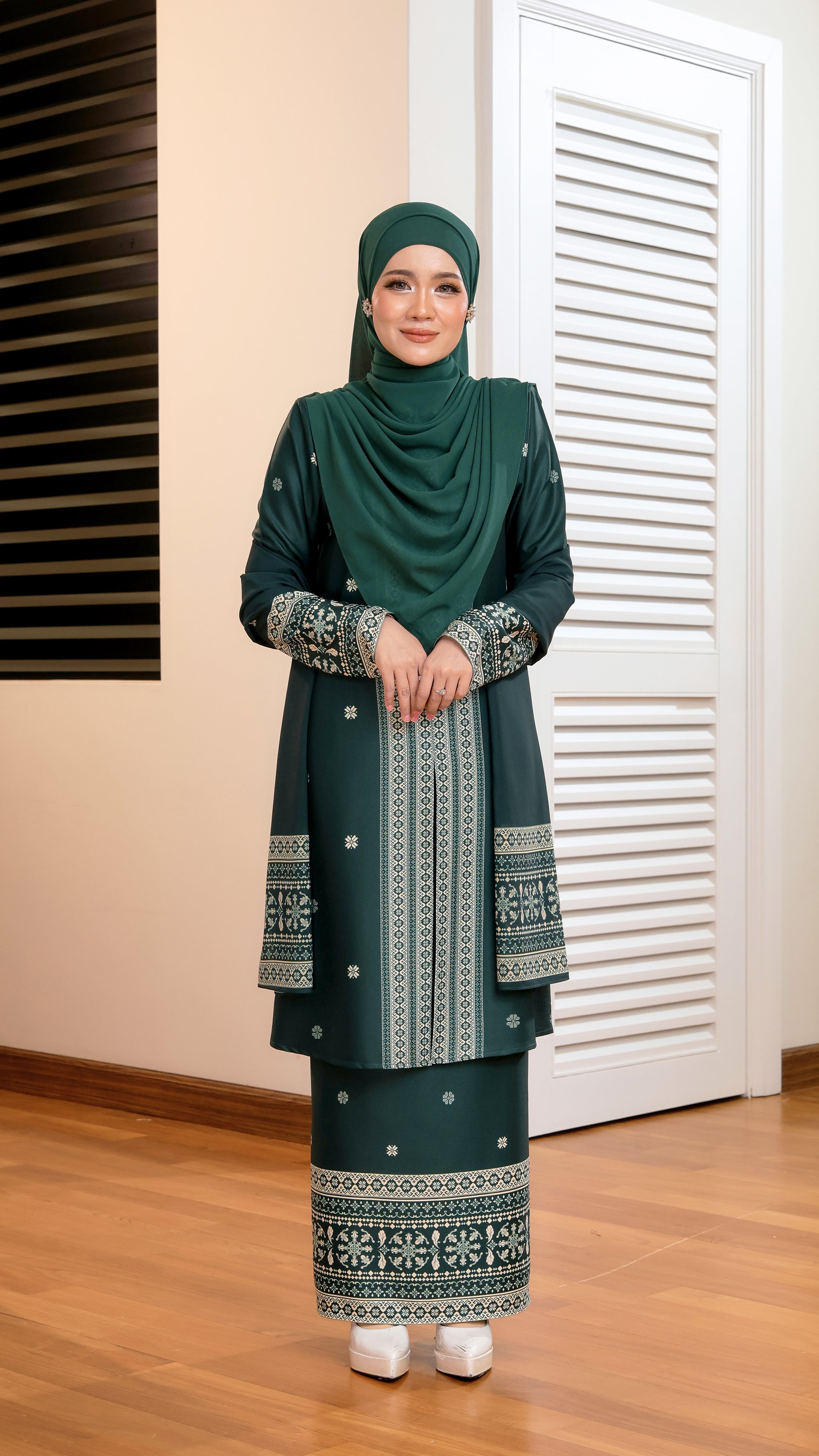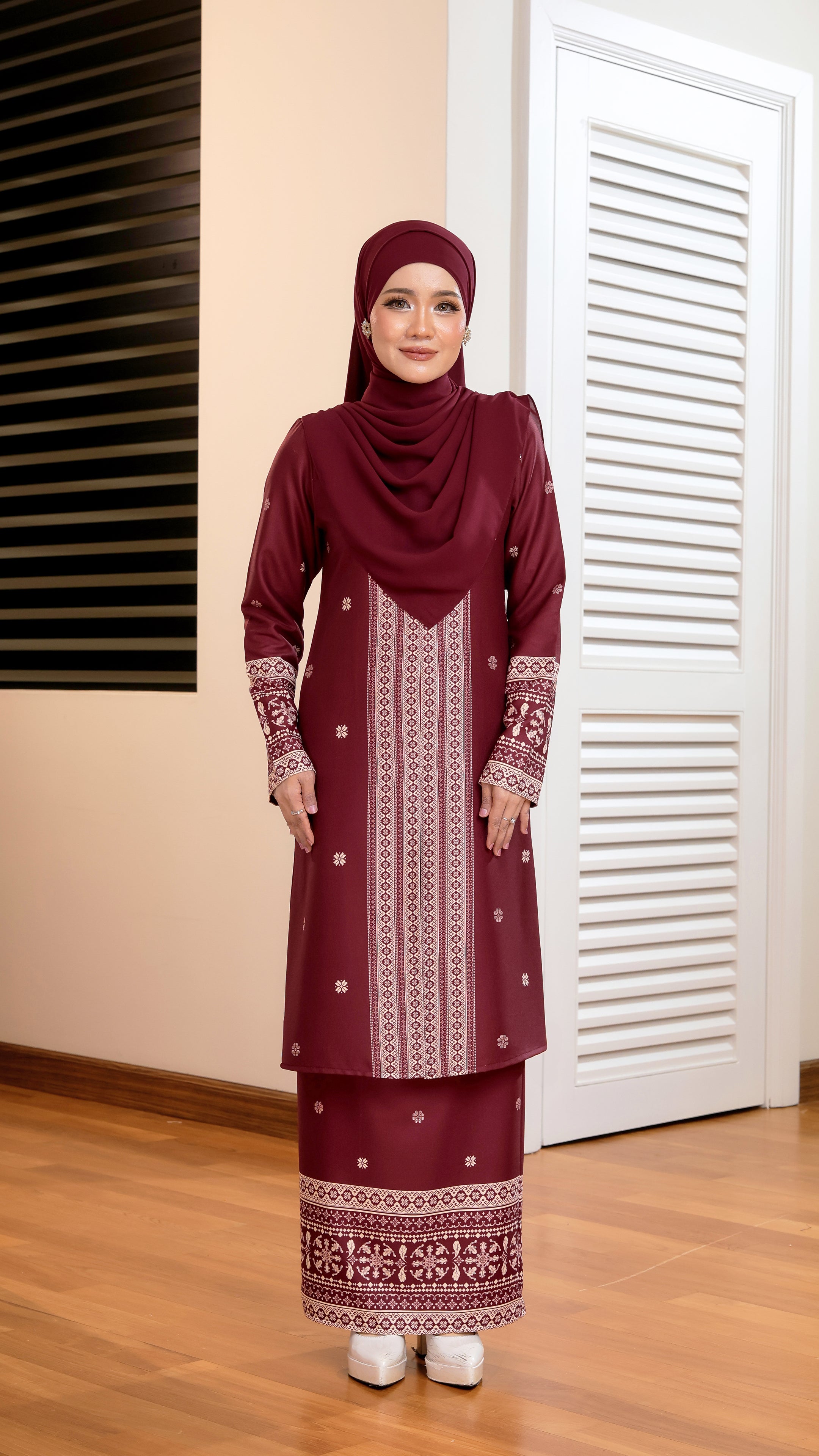 • Custom printed songket motif using digital printing technology for sharper and clearer patterns