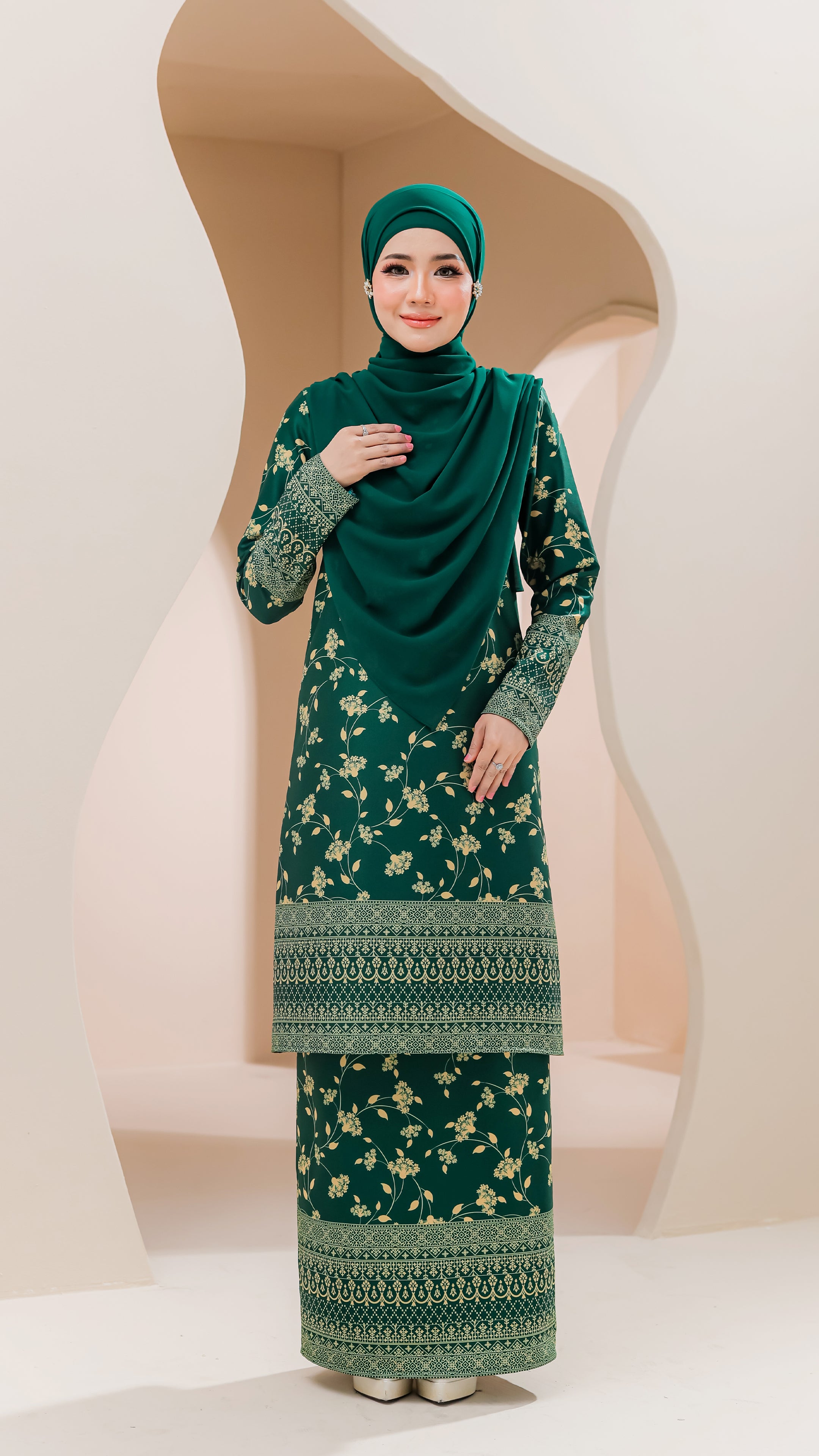 • Custom printed songket motif using digital printing technology for sharper and clearer patterns